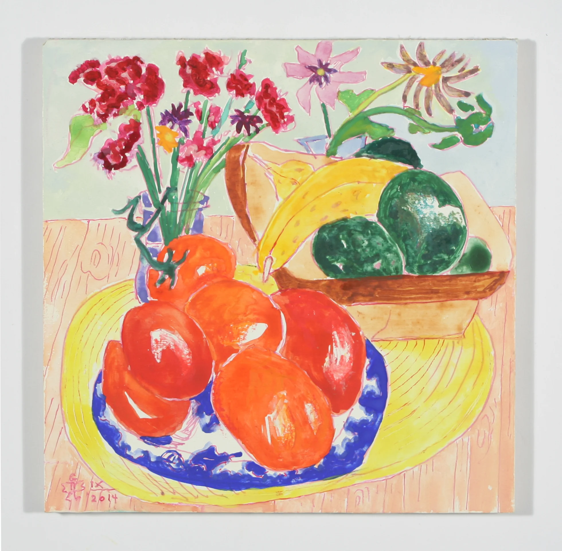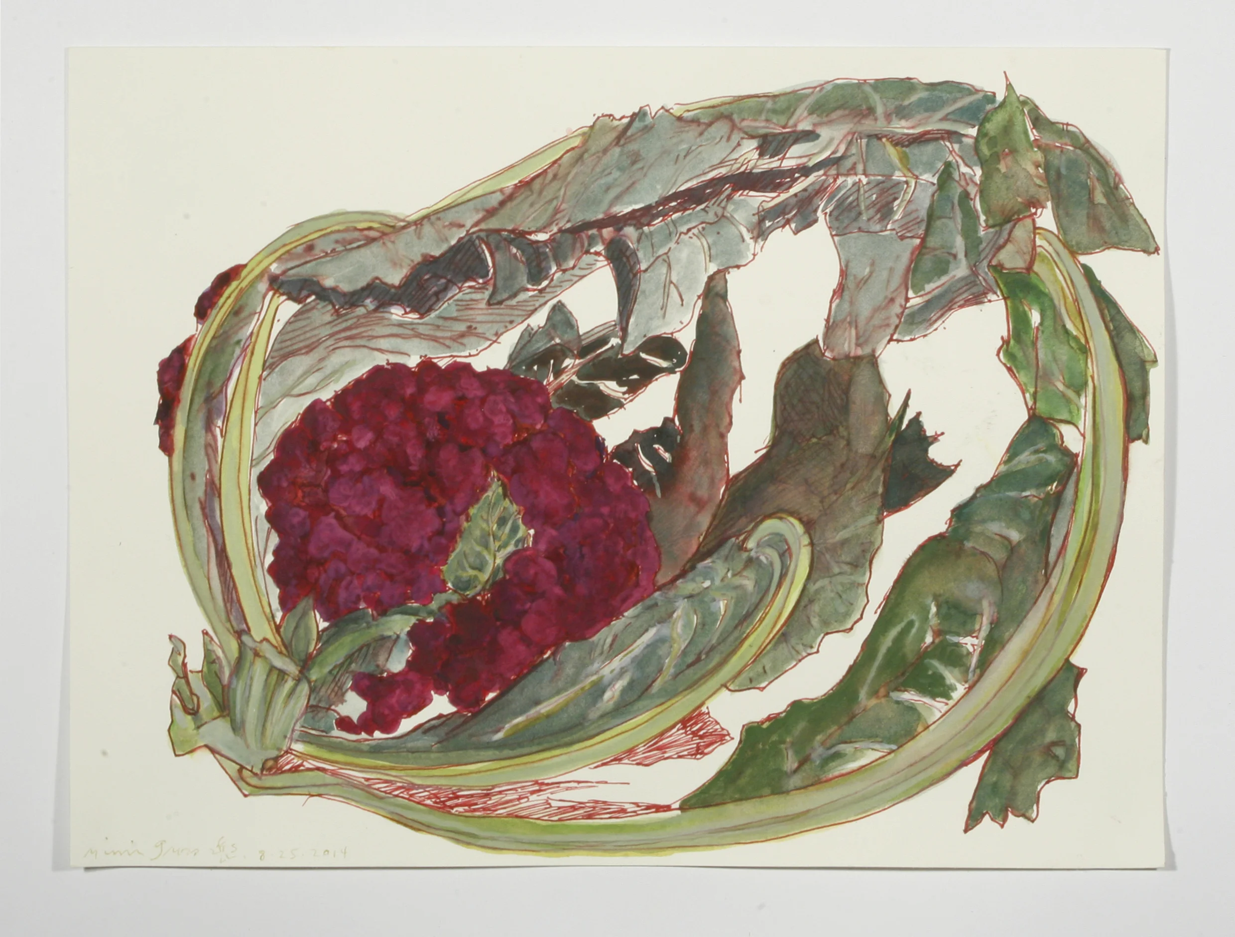 "Nathan's Tomatoes" gel pen, watercolor and gouache, 2014 New work October 7, 2014 "Elizabeth's Flowers" gel pen, watercolor and gouache, 2014 gel pen, watercolor and gouache, 2014 "Purple Broccoli" gel pen, watercolor and gouache, 2014 "Vermont Night Scene" gel pen, watercolor, crayon and gouache, 2014